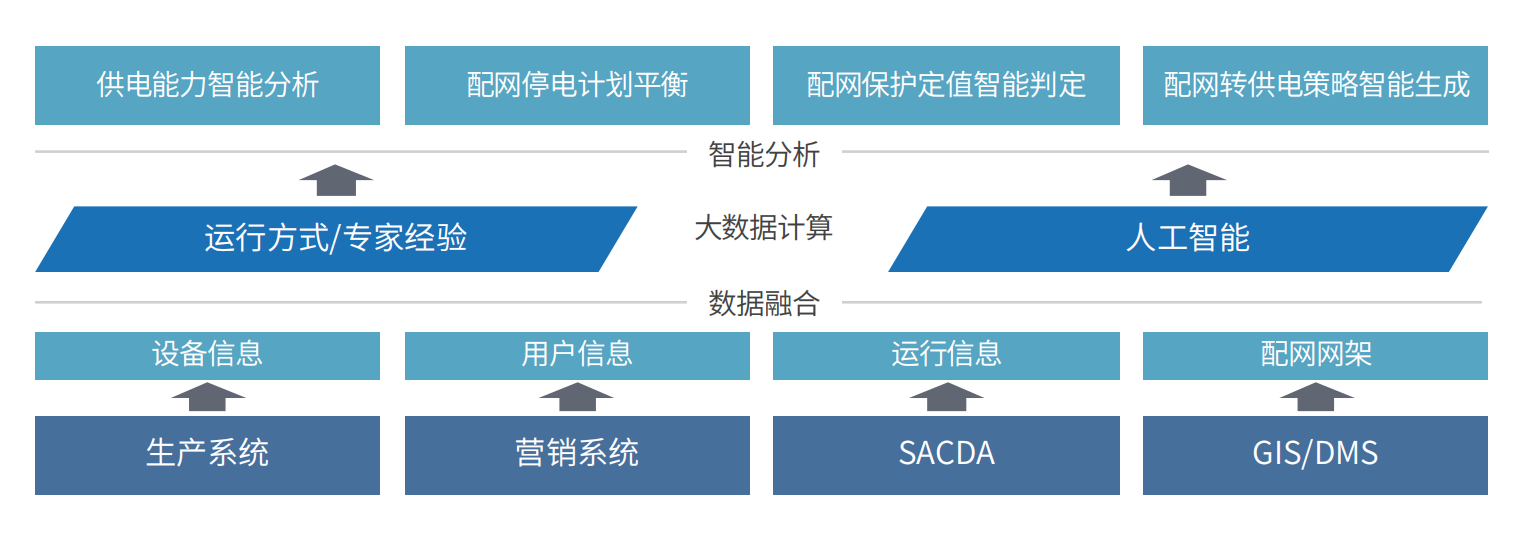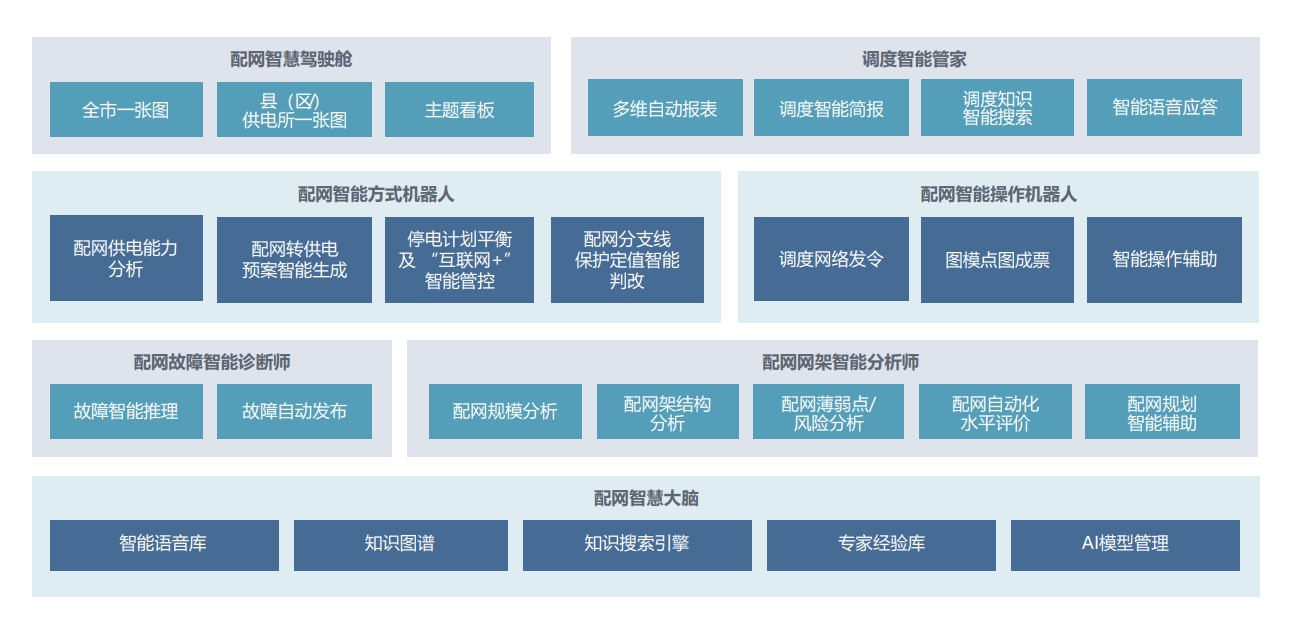 通過配電網(wǎng)多源海量信息融合,利用云、大數(shù)據(jù)、人工智能及物聯(lián)網(wǎng)技術(shù),實現(xiàn)配網(wǎng)故障智能診斷、網(wǎng)架智能分析、風(fēng)險智能識別、方式智能輔助、智能操作、智慧駕駛艙及辦公智能管家等應(yīng)用,搭建一套配網(wǎng)全場景智慧調(diào)度、智慧方式、事故處置、智能管控、智能保電、智能應(yīng)急指揮等多領(lǐng)域的 “智慧科技”,實現(xiàn)特性認(rèn)識、運(yùn)行預(yù)測、計劃平衡、風(fēng)險管控、調(diào)控服務(wù)的配電網(wǎng)調(diào)控智能化、平臺化、體系化的應(yīng)用,推進(jìn)配網(wǎng)調(diào)控數(shù)字化實踐。