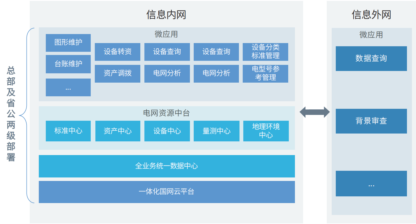 電網(wǎng)資源中臺(tái)定位為公司電網(wǎng)管理、設(shè)備管理、資產(chǎn)管理等應(yīng)用服務(wù)平臺(tái),包含公司共享服務(wù)六大中心,面向企業(yè)級(jí)“一張網(wǎng)” 構(gòu)建、設(shè)備全壽命周期管理提供業(yè)務(wù)中臺(tái)服務(wù),為各專業(yè)前臺(tái)電網(wǎng)資源業(yè)務(wù)應(yīng)用和模型共享提供服務(wù)支撐。