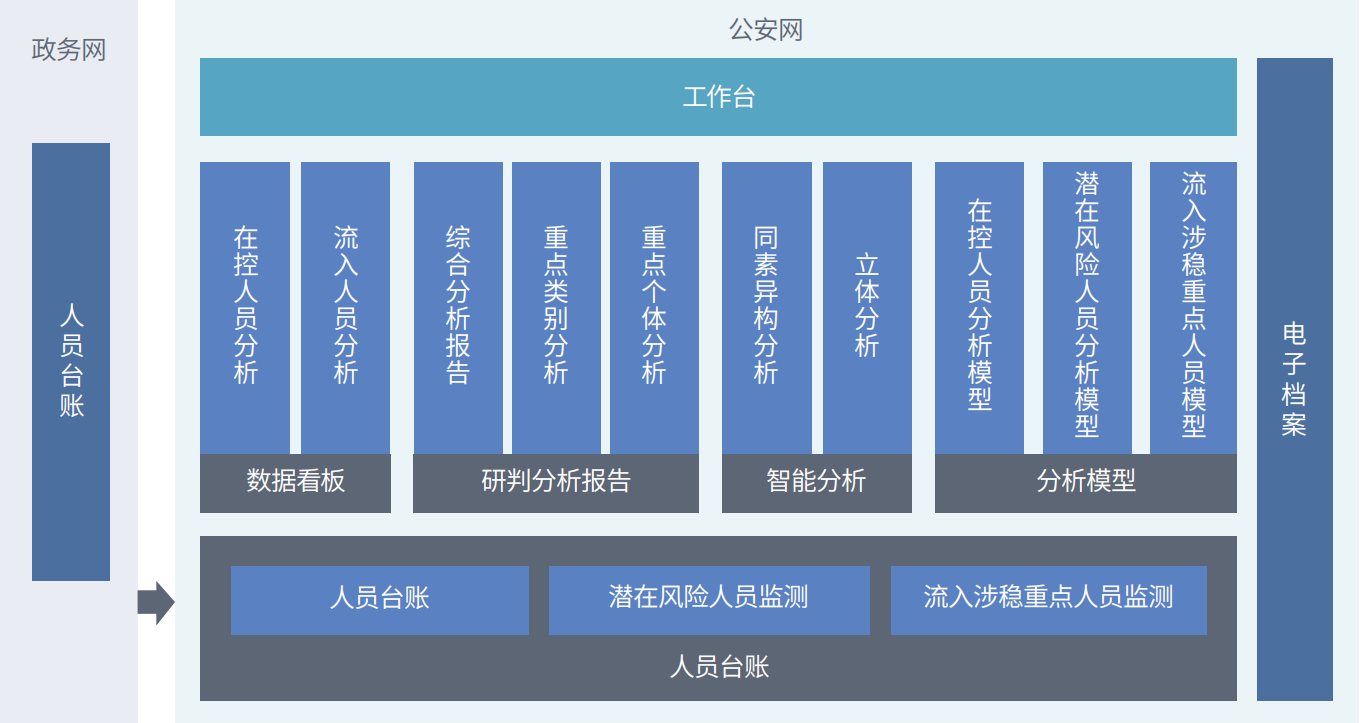 2. 打通政務(wù)網(wǎng)和公安網(wǎng)的通道,實(shí)現(xiàn)兩網(wǎng)重點(diǎn)人員信息聯(lián)動。